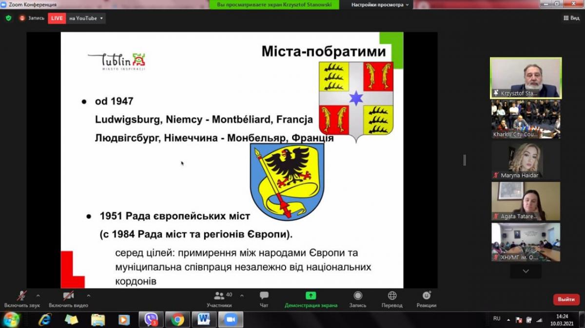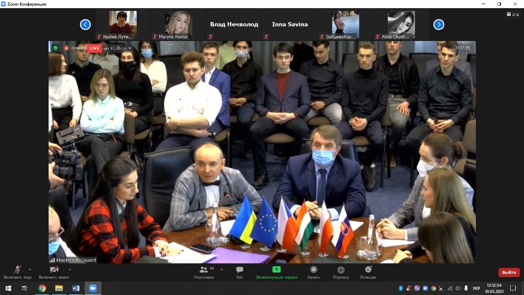 10 березня 2021 року студенти Сумської філії Харківського національного університету внутрішніх справ Гайдар Марина, Терещенко Анна, Зайцева Каріна, Чичотка Аліна, Деулін Дмитро, Омельченко Ірина, Пинчук Вадим, Пустовий Владислав, Косагова Анастасія, Калініченко Богдан, Моргун Сергій, Чернобров Дмитро, Нагорна Вероніка, Островерхова Вікторія, Джамалов Елвін, Гладенко Валерія, Гапонова Руслана, Красуля Дмитро та доцент кафедри юридичних дисциплін Наталія Дуравкіна взяли участь в онлайн семінар на тему «Вишеградська четвірка як приклад регіонального співробітництва».