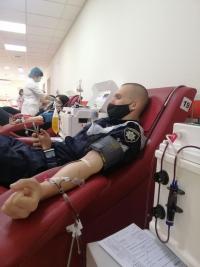 Курсанти 2-го курсу спеціальності 262 «Правоохоронна діяльність»: Богдан Гайдуков, Владислав Лук’яненко, студентка 2-го курсу спеціальності 081 «Право» Будюкова Євгенія та провідний фахівець філії Цвітана Баранова Сумської філії Харківського національного університету внутрішніх справ вкотре стали донорами крові.
