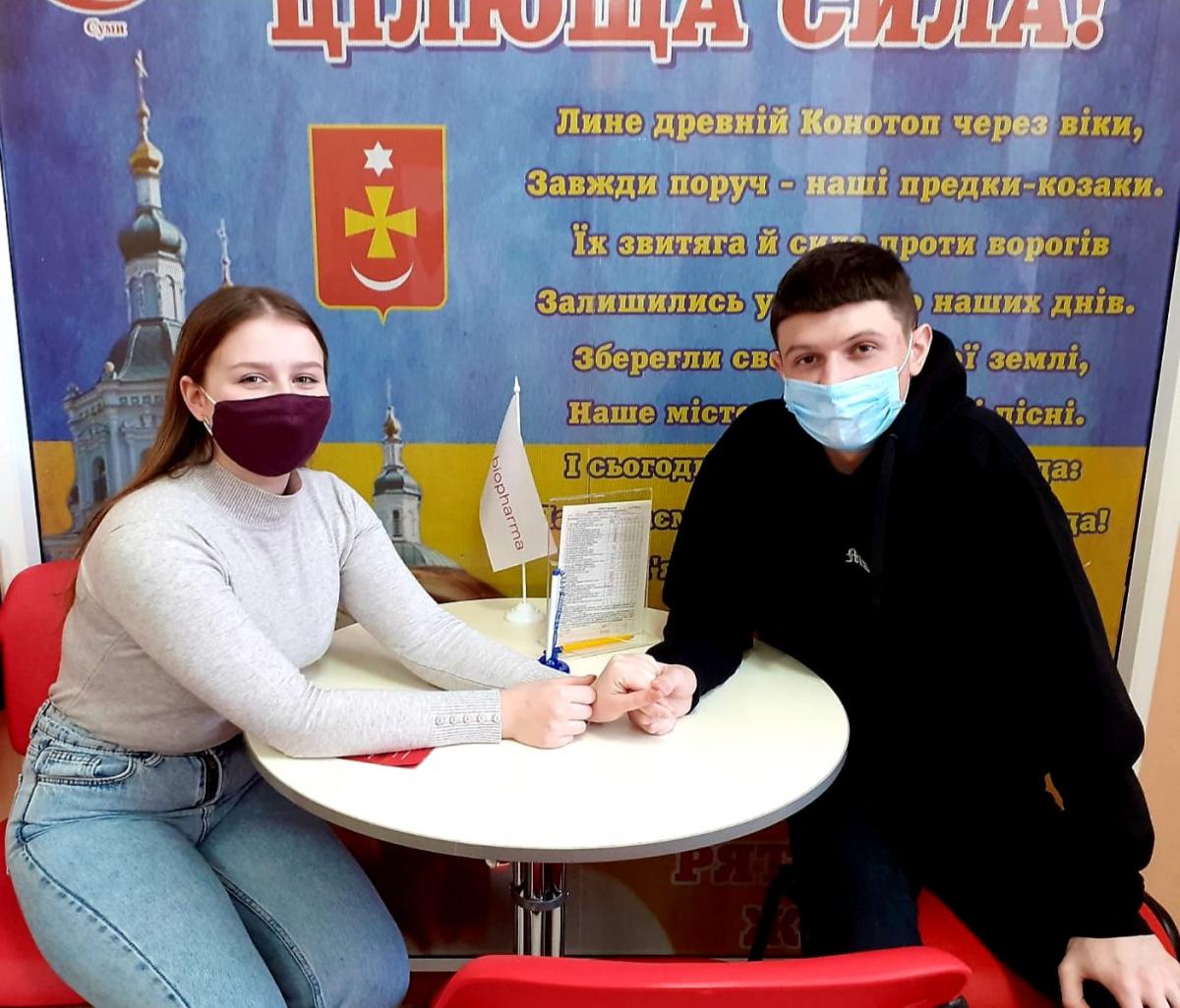 Курсант 1 курсу Сумської філії Харківського національного університету внутрішніх справ Градун Ігор вперше в своєму житті став донором. До Центру плазми в місті Конотоп він прийшов зі своєю подругою Катериною. Як стверджує Ігор, маленький внесок у велику справу зробив їх щасливими, адже донорство – благородна і почесна місія.