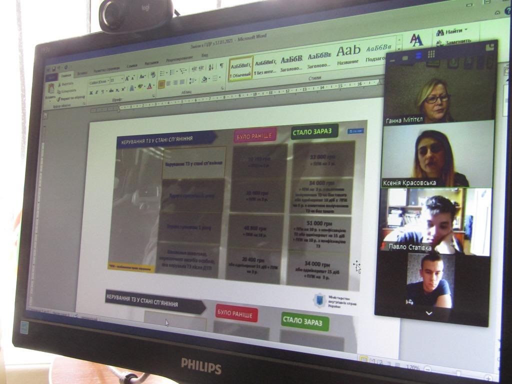 Під час зустрічі спікерка провела бесіду зі здобувачами 1-4 курсів щодо змін у сфері безпеки дорожнього руху. Здобувачі більше дізнались про принципи роботи та механізми ефективної взаємодії патрульної поліції з громадськістю нашого міста.