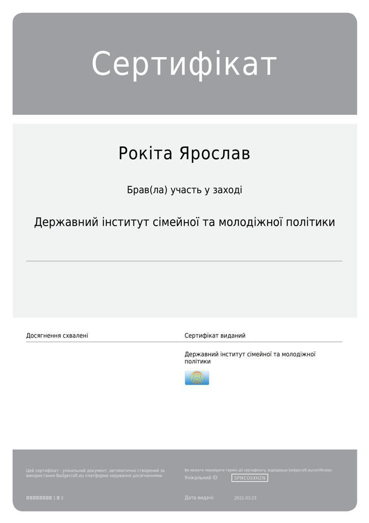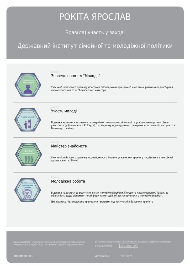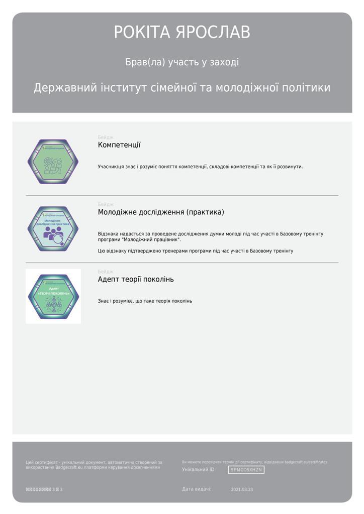 Днями магістрант Сумської філії Харківського національного університету внутрішніх справ Рокіта Ярослав став учасником тренінгу базового рівня Програми «Молодіжний працівник», який проходив за підтримки Програми розвитку ООН в Україні. Організатор - Державний інститут сімейної та молодіжної політики.