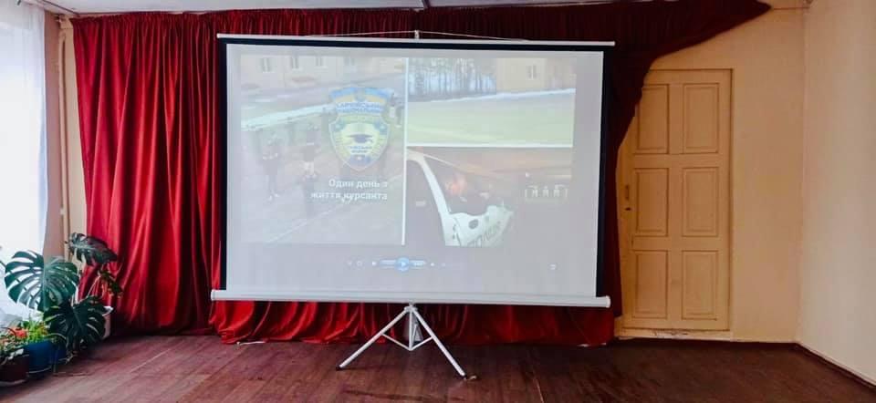 Учням продемонстрували фільм «Один день із життя курсанта» аби вони детально ознайомилися зі специфікою навчання курсантів.