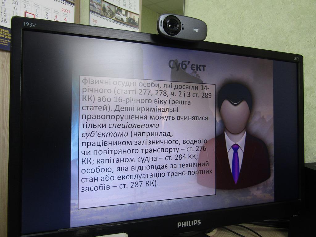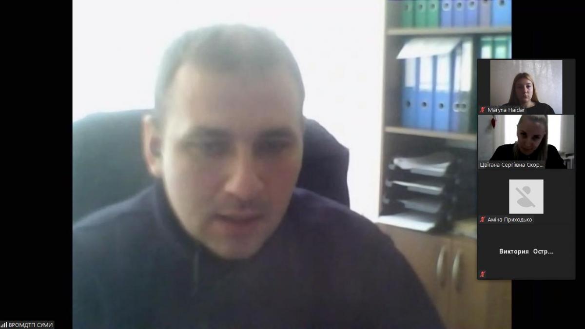 На початку зустрічі викладачі разом зі студентами проаналізували загальні положення та види кримінальних правопорушень, передбачених розділом XI Особливої частини Кримінального кодексу України, акцентували увагу на змінах, внесених до нього у 2021 році. Після чого Олександр Худінов розповів дуже детально про оформлення поліцейськими матеріалів ДТП. Начальник відділу ознайомив здобувачів зі статистикою дорожньо-транспортних пригод по Сумській області за 2020 – 2021 роки, розповів про останні зміни до Правил дорожнього руху.