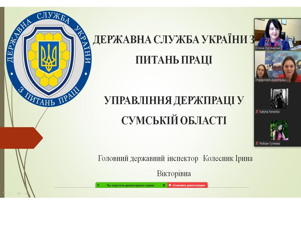 Ірина Колесник представила власну презентацію і розповіла про структуру і напрямки роботи управління Держпраці в Сумській області, функції інспекторів з охорони праці, їх повноваження і відповідальність.