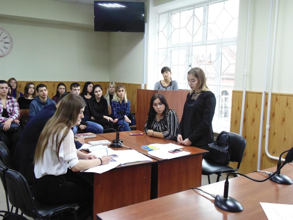 В якості експерта для обговорення та підбиття підсумків проведеного модельного засідання взяла участь голова Зарічного районного суду м. Суми Ганна Шелєхова. Після «оголошення» вступної та резолютивної частини рішення суддею та закриття судового засідання, вона спілкувалася зі студентами.