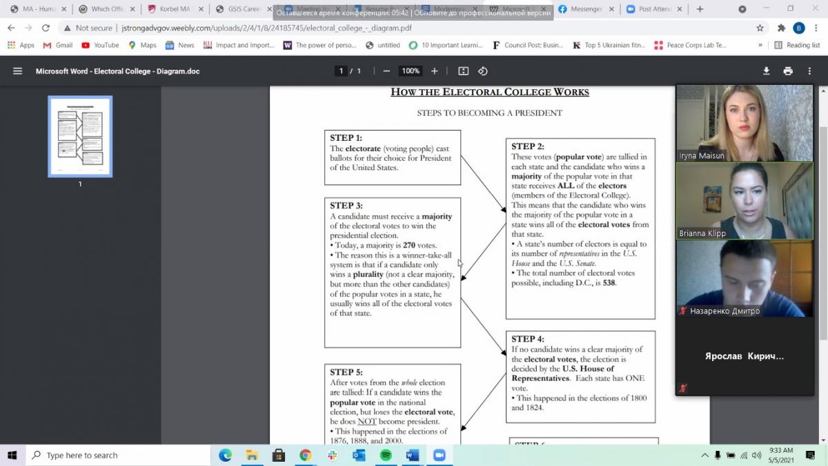 Студенти мали змогу поглибити свої знання в таких питаннях, як основні форми демократії в США, порядок роботи та процедура призначення суддів Верховного Суду США.