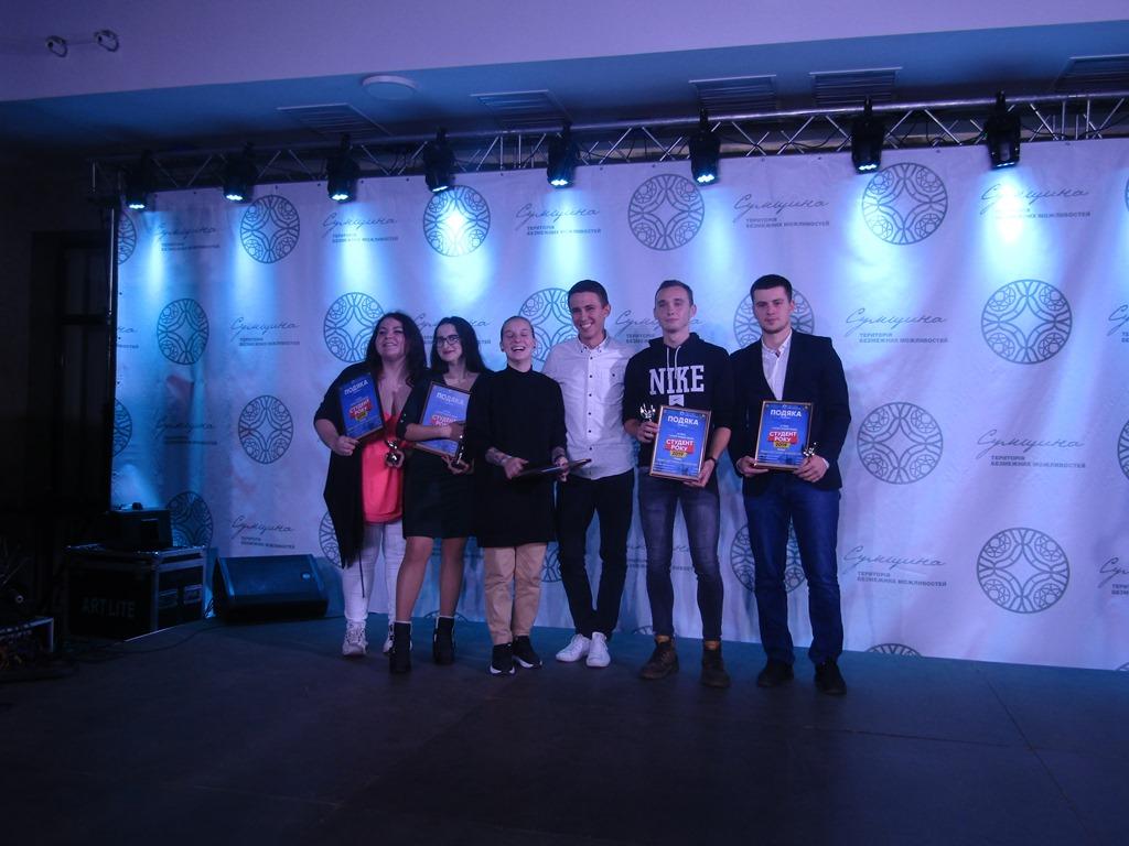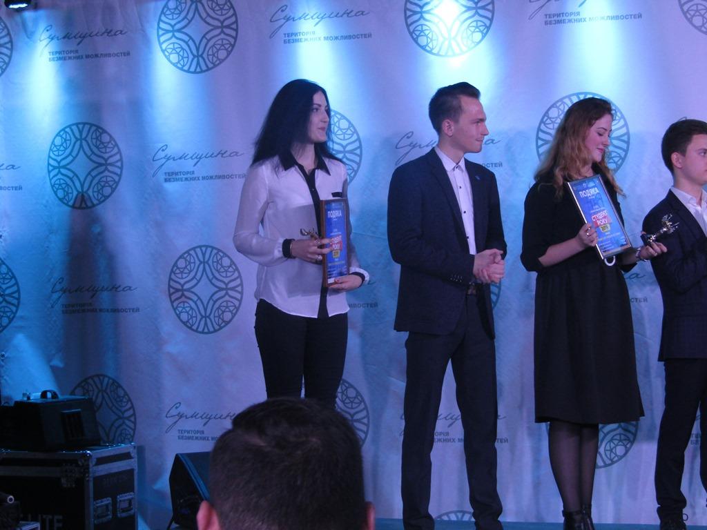 На початку заходу студенти Сумської філії отримали грамоти за вагомий особистий внесок у розвиток молодіжної творчості та з нагоди Дня студента, а саме Грамоту Голови Сумської обласної державної адміністрації отримав Ярослав Рокіта (4 курс) та Грамоти Сумського міського голови вручили Валерії Будяк (3 курс) і Гайдар Марині (2 курс).
