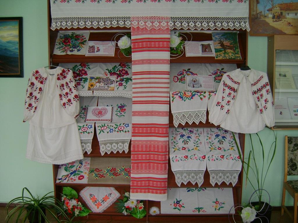 До всесвітнього дня вишиванки працівники бібліотеки підготували виставку вишиванок “А над світом українська вишиванка цвіте”.