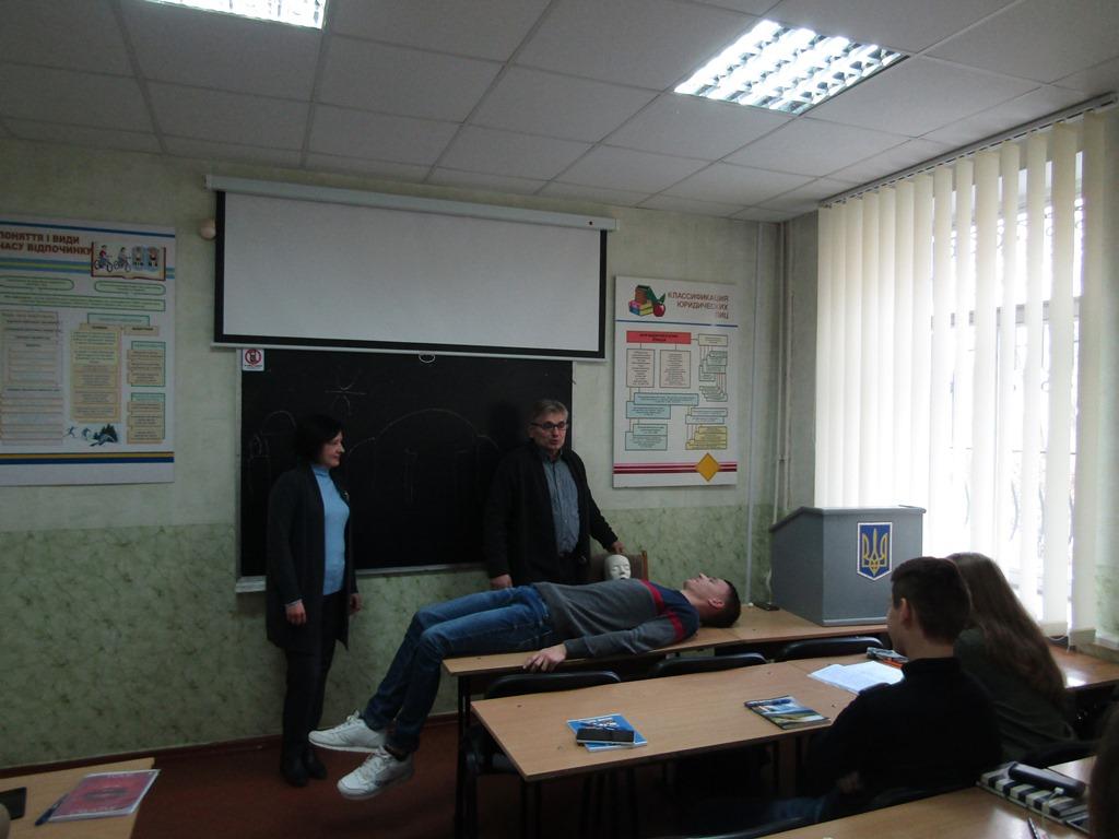 Друга частина зустрічі відбувалась у формі тренінгу на тему: «Принципи проведення реанімаційних заходів», до чого були безпосередньо залучені присутні в аудиторії студенти.