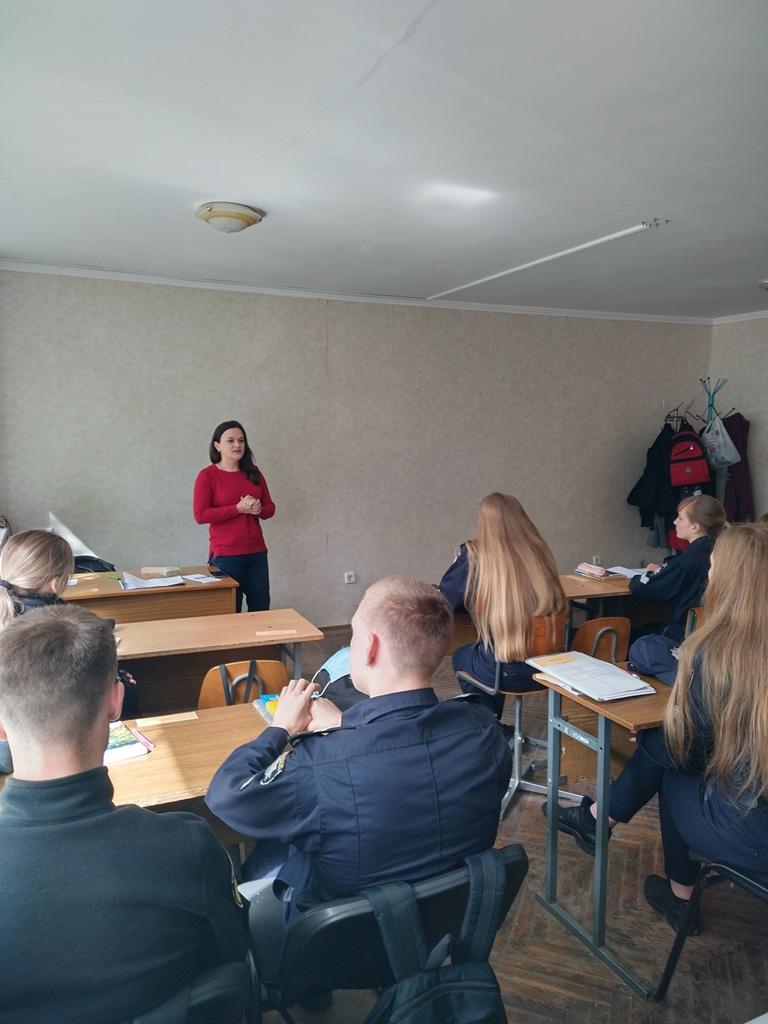 У рамках дисципліни «Конфліктологія» для курсантів 2-го курсу групи СФ-201 Сумської філії проведено бінарне заняття за участю практичного психолога КУ «Центр учасників бойових дій», консультанта програми СЕТА Інни Шкафенко.