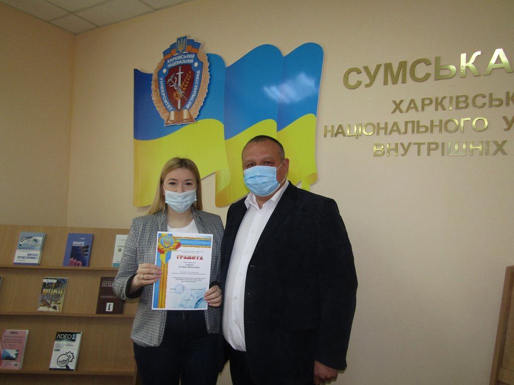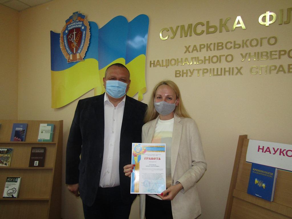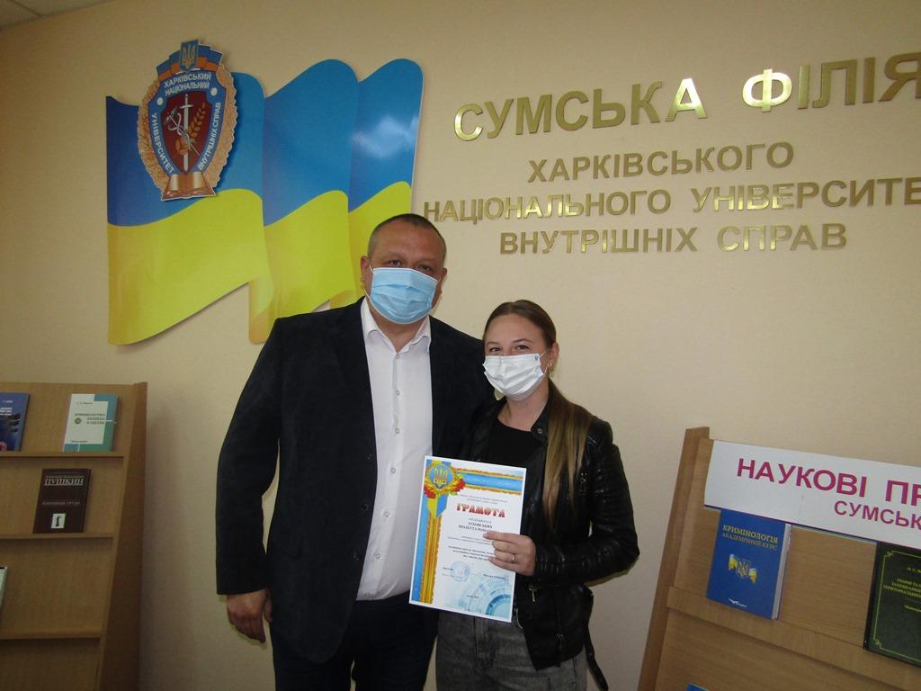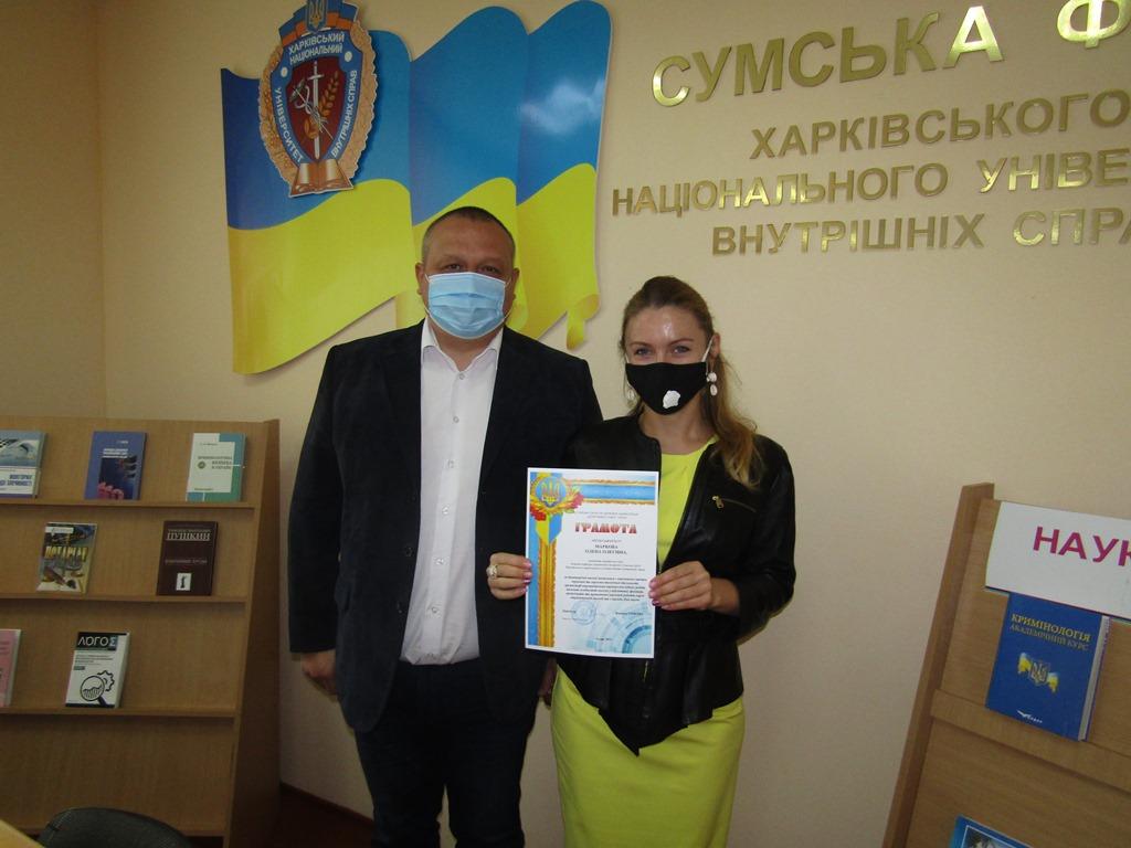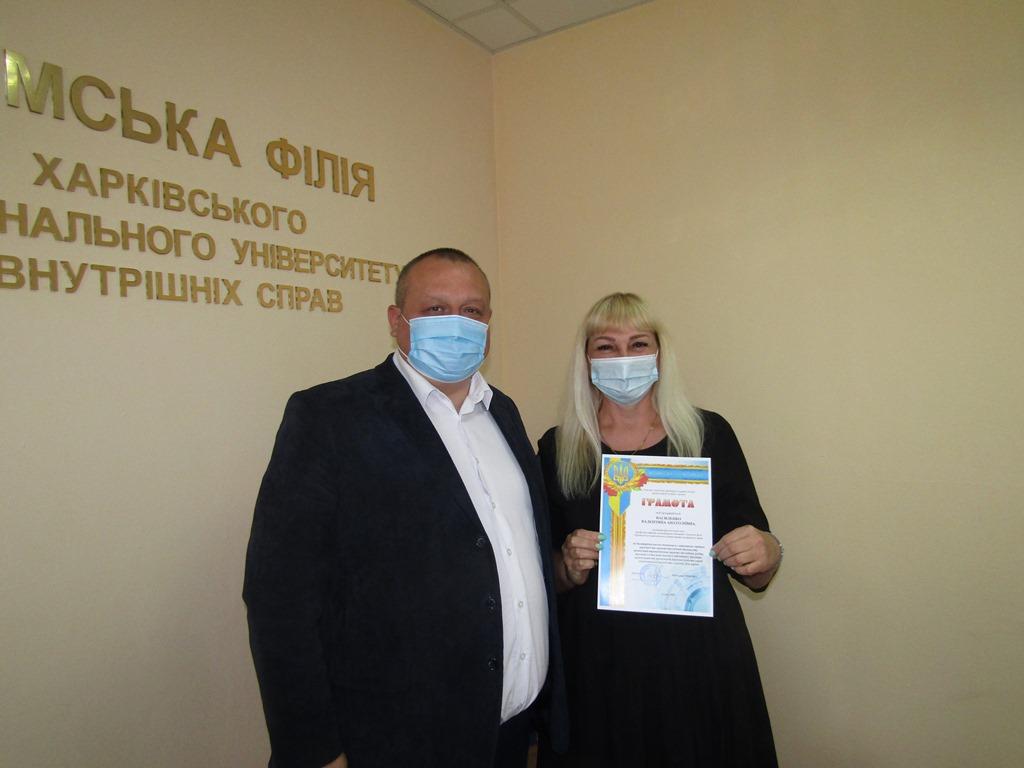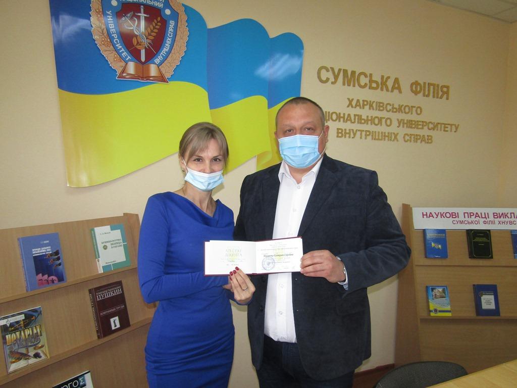 Розпочав засідання голова вченої ради, директор Сумської філії ХНУВС заслужений юрист України, доктор юридичних наук, професор Сергій Лукаш із приємної церемонії – вручення атестата про присвоєння вченого звання доцента заступникові директора - начальникові відділу навчально-методичної роботи Катерині Науменко. Урочистий момент засідання продовжився нагородженням грамотами за вагомий внесок у виховання нової генерації наукової еліти, формування нових освітніх традицій закладу вищої освіти науковців філії та відзначення за перемоги у наукових конкурсах здобувачів вищої освіти Сумської філії ХНУВС.