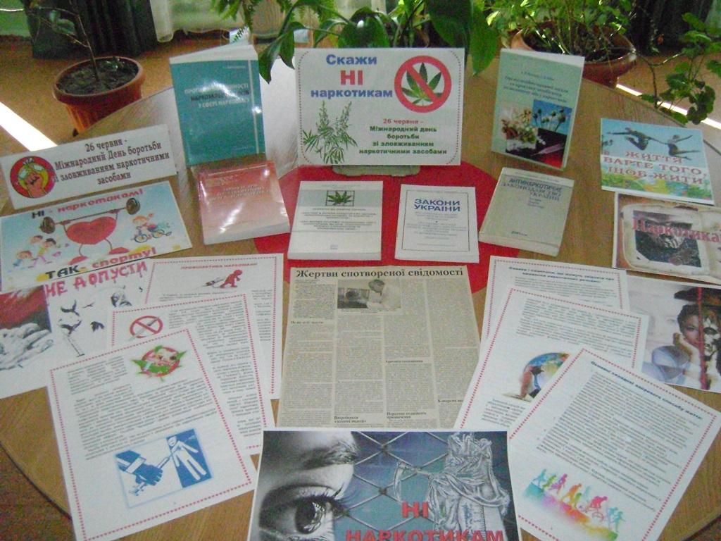 Робота бібліотеки сприяє інформуванню громадян про серйозну проблему нашого часу - проблему наркоманії. Тільки завдяки спільним зусиллям можна досягти позитивних результатів у вирішенні глобальної проблеми сучасності – наркоманії. З нагоди цієї дати в читальній залі організовано виставку-полеміку «Наркоманія – залежність чи звичка». Користувачі зможуть почерпнути свої знання з представлених матеріалів.