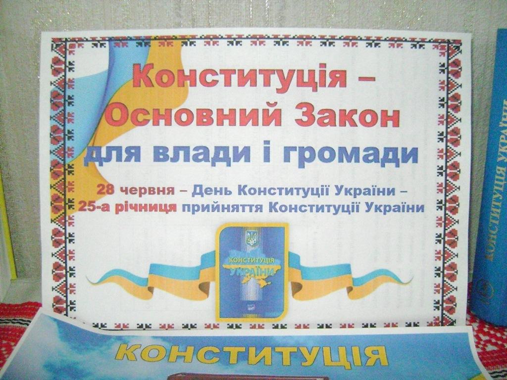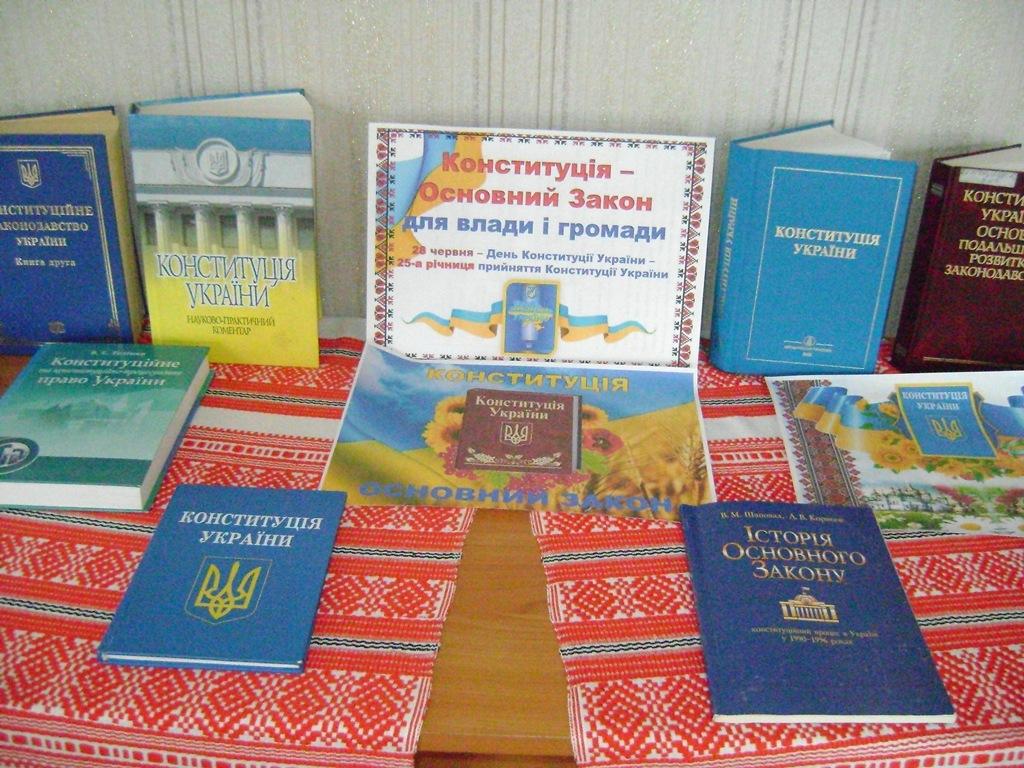 З нагоди цієї дати в бібліотеці підготовлено виставку-роздум «Конституція – основний закон для влади і громади», де представлено Основний Закон, науково-практичні коментарі, підручники, посібники з конституційного права, історії конституційного процесу, збірники законодавства та збірники наукових праць. Відвідувачі виставки зможуть дізнатися більше про проблеми конституціоналізму, Конституції України, конституційні реформи, про непростий шлях незалежної України від молодої демократії до соціально-правових стандартів та цінностей об’єднаної Європи.