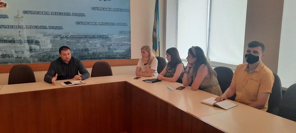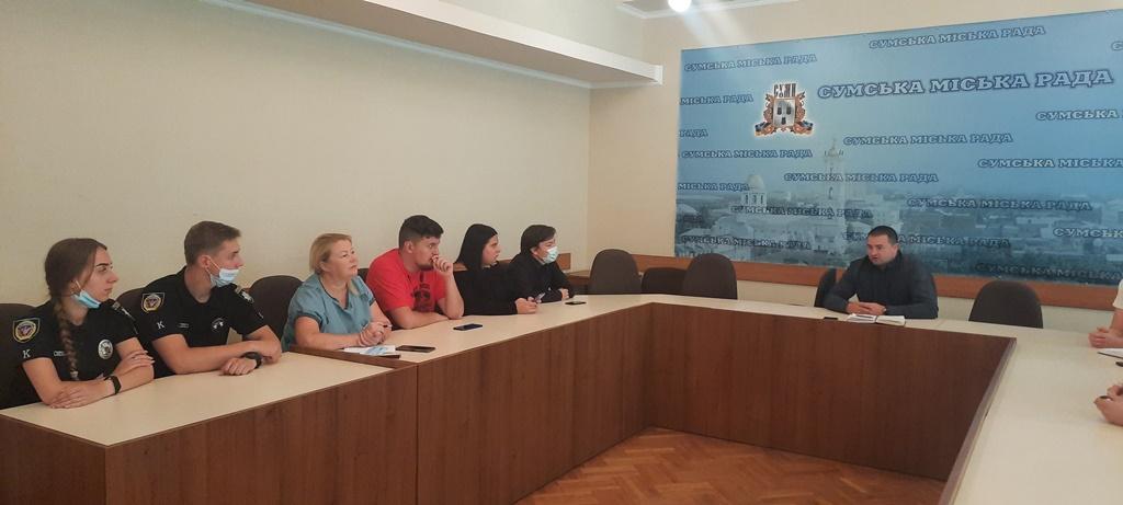 Провідний фахівець відділення кадрового забезпечення Сумської філії Харківського національного університету внутрішніх справ Ганна Мітітєл разом із членами студентсько-курсантського самоврядування курсантами Сагайдак Аліною та Торяник Георгієм взяли участь у робочій нараді при заступникові міського голови.