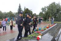 Курсанти разом із представниками органів державної влади та місцевого самоврядування, різних установ та організацій, військовими, мешканцями міста, молоддю закладів освіти поклали квіти та вшанували хвилиною мовчання пам'ять загиблих.