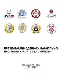 2 вересня 2021 року викладачі кафедри гуманітарних дисциплін Юлія Самойлова, Олена Шкурат та Лариса Гарцунова взяли участь у онлайн-презентації Модельної навчальної програми курсу «Legal English», що розробила команда викладачів українських та американських правничих шкіл за підтримки Програми USAID «Нове правосуддя» з метою сприяння впровадженню стандартів юридичної освіти та модернізації лінгвістичної підготовки правників в глобалізованому світі. Цей інноваційний навчальний план передбачає, що студенти мають отримати 300 кредитів ЄКТС із різних навчальних дисциплін впродовж 10 семестрів або п’яти років. Навчальний план містить три групи навчальних предметів: обов’язкові навчальні дисципліни, що їх мають викладати в рамках програми (152 кредити ЄКТС); обов’язкові навчальні дисципліни на вибір університету (28 кредитів ЄКТС); та дисципліни на вільний вибір студента (120 кредитів ЄКТС). Окрім обов’язкових курсів, автори рекомендують навчальні дисципліни, які варто включити до навчального плану правників і, таким чином, надати студентам можливість вивчати їх в рамках обов’язкових навчальних дисциплін на вибір університету або як частки дисциплін на вільний вибір здобувачів освіти. Дисципліни поділено за 5-ма пріоритетними напрямками правознавства: приватне право, публічне право, кримінальне право, правничі навички та правничі основи.