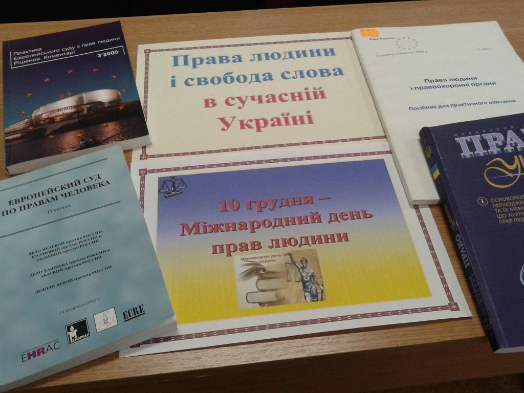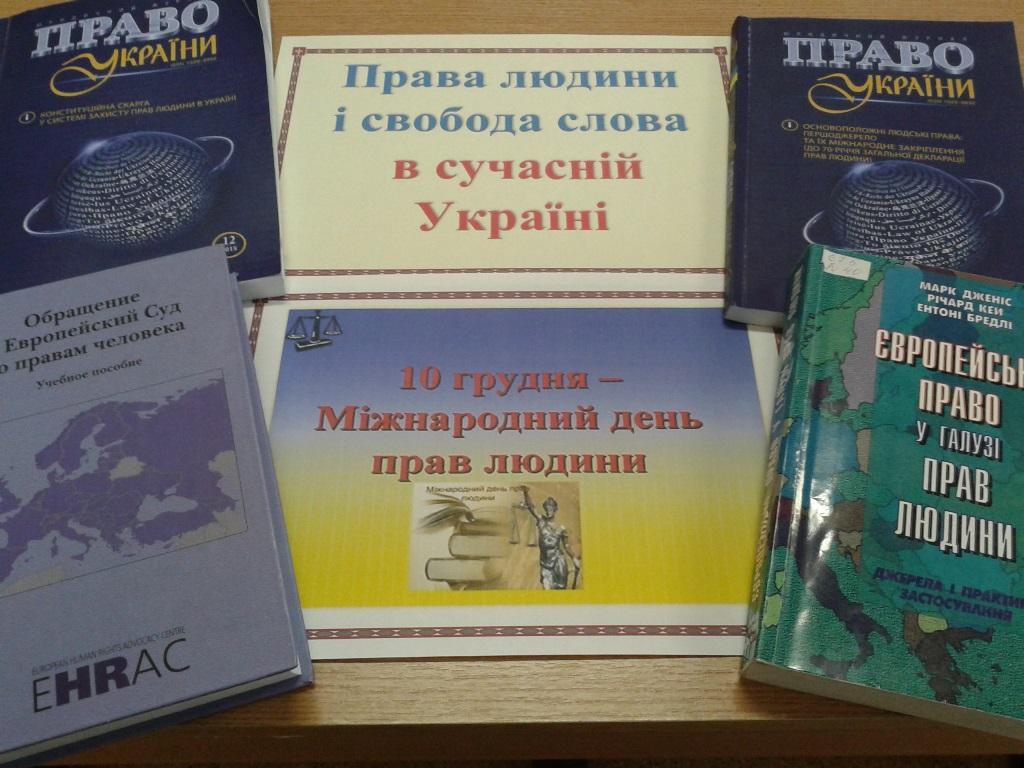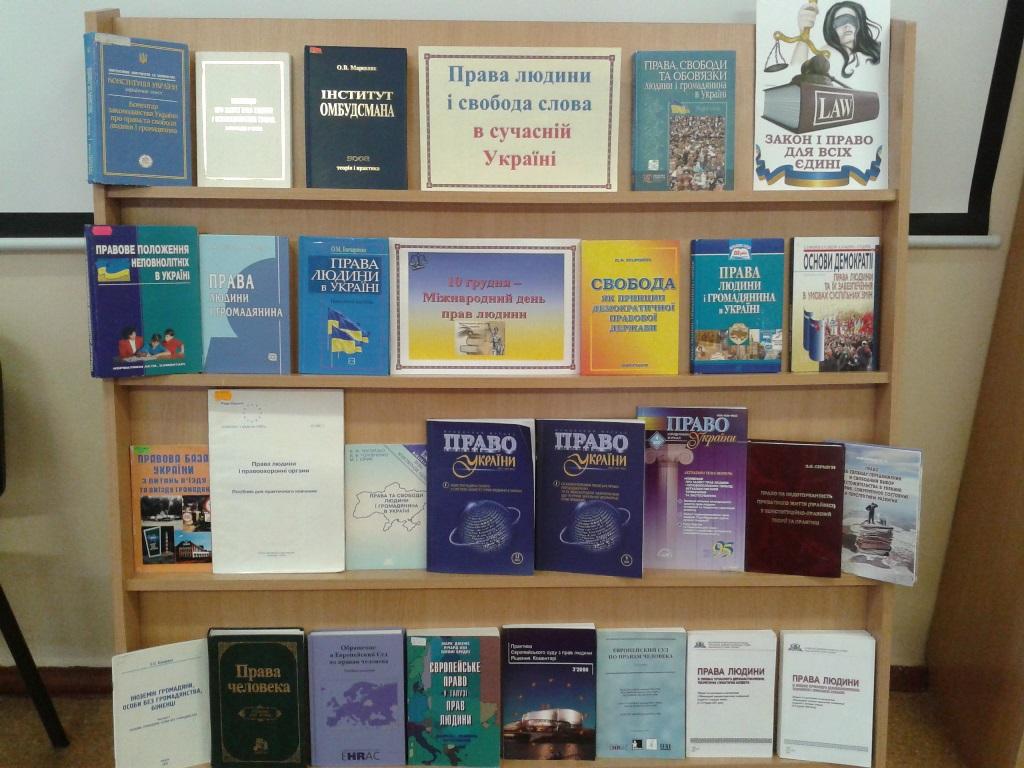 До Всеукраїнського тижня права та До Міжнародного дня прав людини у бібліотеці оформлено книжкову виставку «Права людини і свобода слова в сучасній Україні»