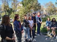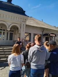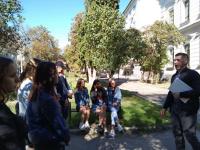 Екскурсоводом виступив Володимир Луговий, який познайомив студентів зі старим кварталом міста, вулицею Троїцькою, яка була розбудована наприкінці ХІХ ст. «Кожна будівля «старого мєста» тримає у своїх стінах легенди та цікаві факти про своє існування. Вони формують зовнішній образ Сум», - розпочав свою розповідь Володимир. Саме тут у ті часи будувала свої садиби знать та інтелігенція. Саме ця частина міста зберегла неймовірну кількість пам’яток архітектури і ховає у собі непересічні історії непересічних людей».
