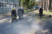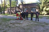 Під час заходу було проведено підключення до пожежного гідранту, розмотування пожежних рукавів, випробовування вогнегаснику при імітації гасіння пожежі та евакуацію курсантів з приміщень із застосуванням пожежної сигналізації.
