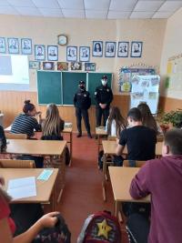 Доцент кафедри гуманітарних дисциплін Сумської філії Харківського національного університету внутрішніх справ Тетяна ГЕРАЩЕНКО разом із курсантами 2 курсу Георгієм ТОРЯНИКОМ та Дариною ВЕРБИЦЬКОЮ провели профорієнтаційну роботу в одинадцятому класі Сумської ЗОШ І-ІІІ ступенів № 5.