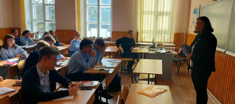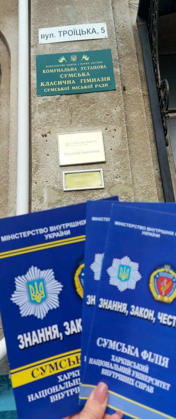 Кандидат історичних наук, доцент кафедри юридичних дисциплін Гончаренко Л.Л. в рамках профорієнтаційної роботи відвідала Сумську класичну гімназію, поспілкувалася з майбутніми випускниками, розповіла про особливості та переваги навчання у Сумській філії Харківського національного університету внутрішніх справ.