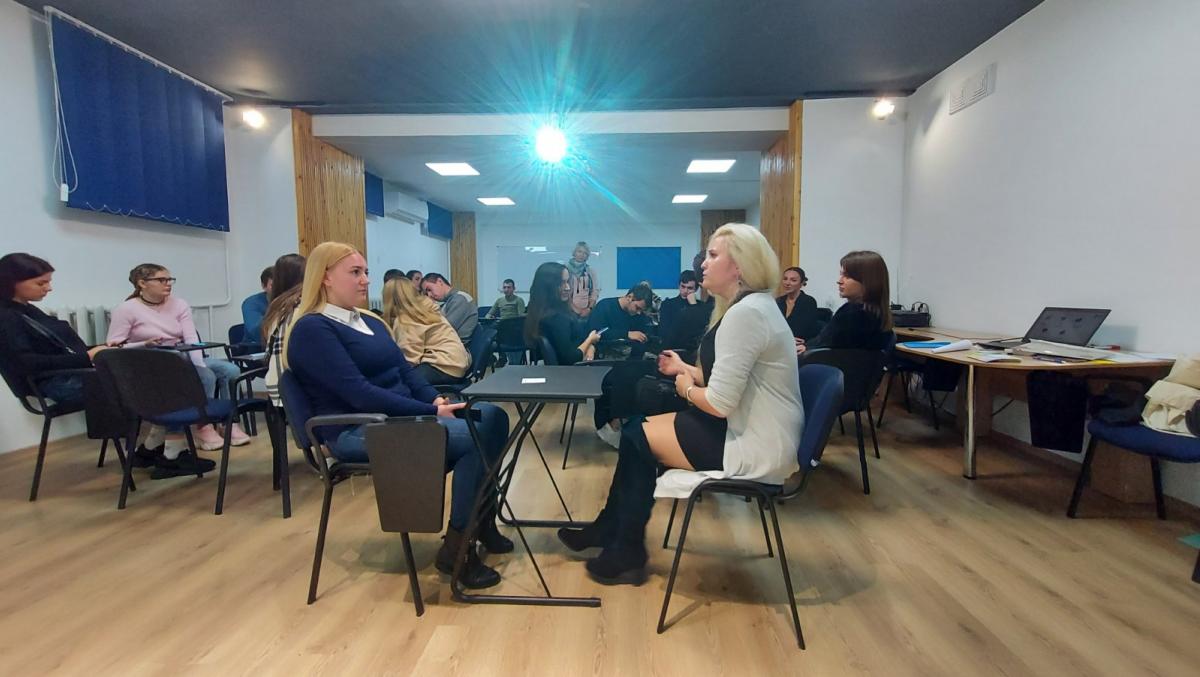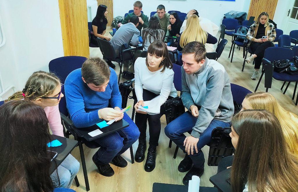 Тренерки Яна Кравець, юристка Регіонального центру БВПД у Сумській області, та Олена Бондар, фахівчиня Сумського місцевого центру БВПД, приділили значну увагу таким елементам, як тімбілдінг та самопредставлення, які провели в ігровій формі, щоб спонукати до спілкування студентів із різних закладів вищої освіти.